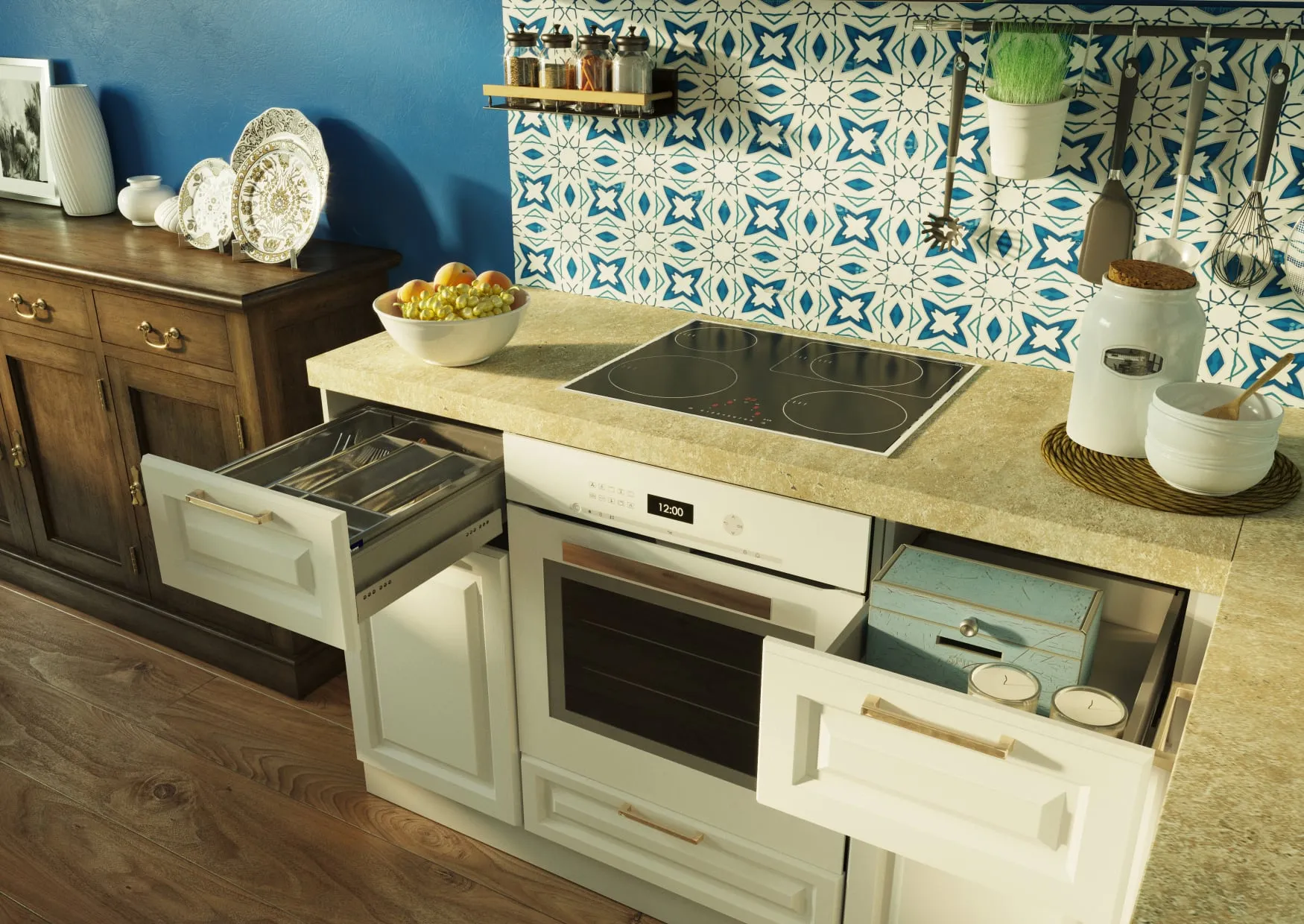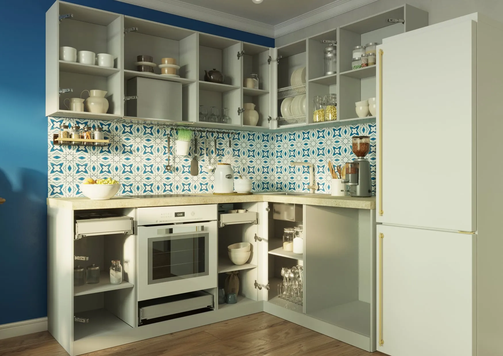 Механизмы открывания: петли BOYARD с доводчиком, направляющие Quadro 25 (Hettich)