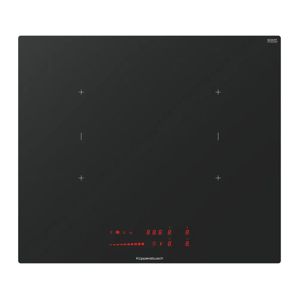Оснащение: - 11-ступенчатая регулировка мощности "glideControl" с красными индикаторами - 1 специальная ступень: сохранение тепла ок. 70°C - Память при отключении - Функция объединения ближней и дальней варочных зон в одну - Автоматика закипания - Индикация остаточного тепла - Таймер с функцией отключения - Централизованное отключение - Принудительное отключение (ограничение продолжительности работы) - 4 варочные зоны 210 x 190 мм / 2100 Вт (3000 Вт*) * при включении режима «Power»