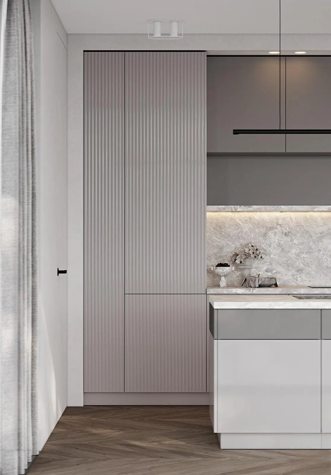 Фасады: Флавио (крашеная МДФ), цвет NCS S 2002-Y50R Глянец / «Система», цвет NCS S 5005-Y50R Матовый, NCS S 1502-Y50R Глянец
