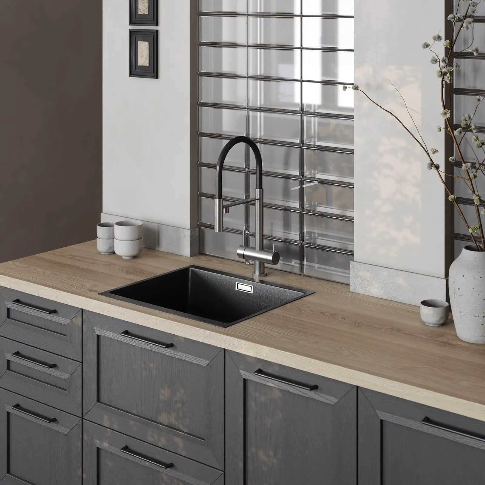 Система выдвижения: LEGRABOX, цвет Серый Орион Матовый; профиль с акцентной подсветкой