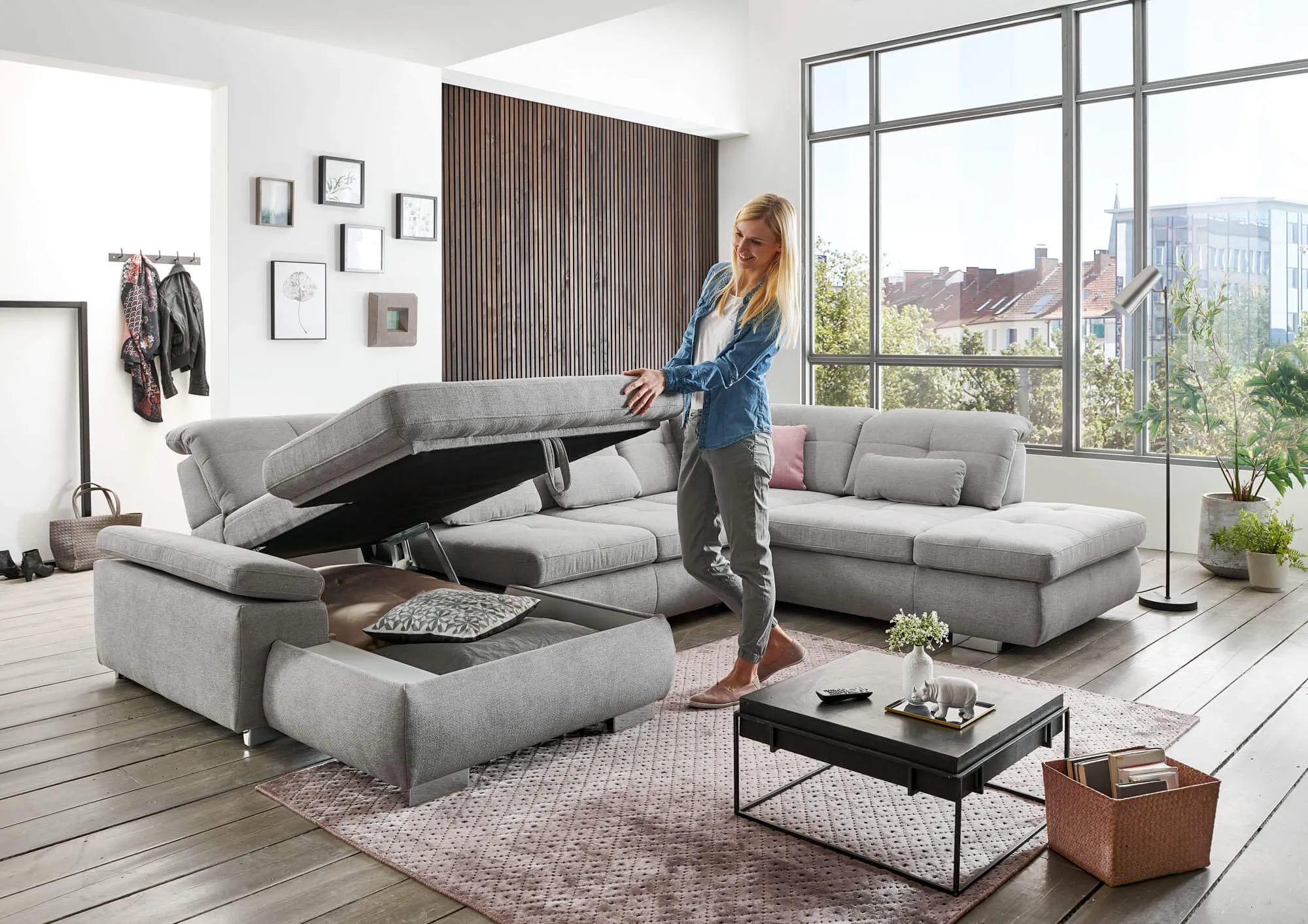 Канапе с ящиком для хранения с ручной регулировкой глубины сиденья; Регулируемые подголовник и подлокотник