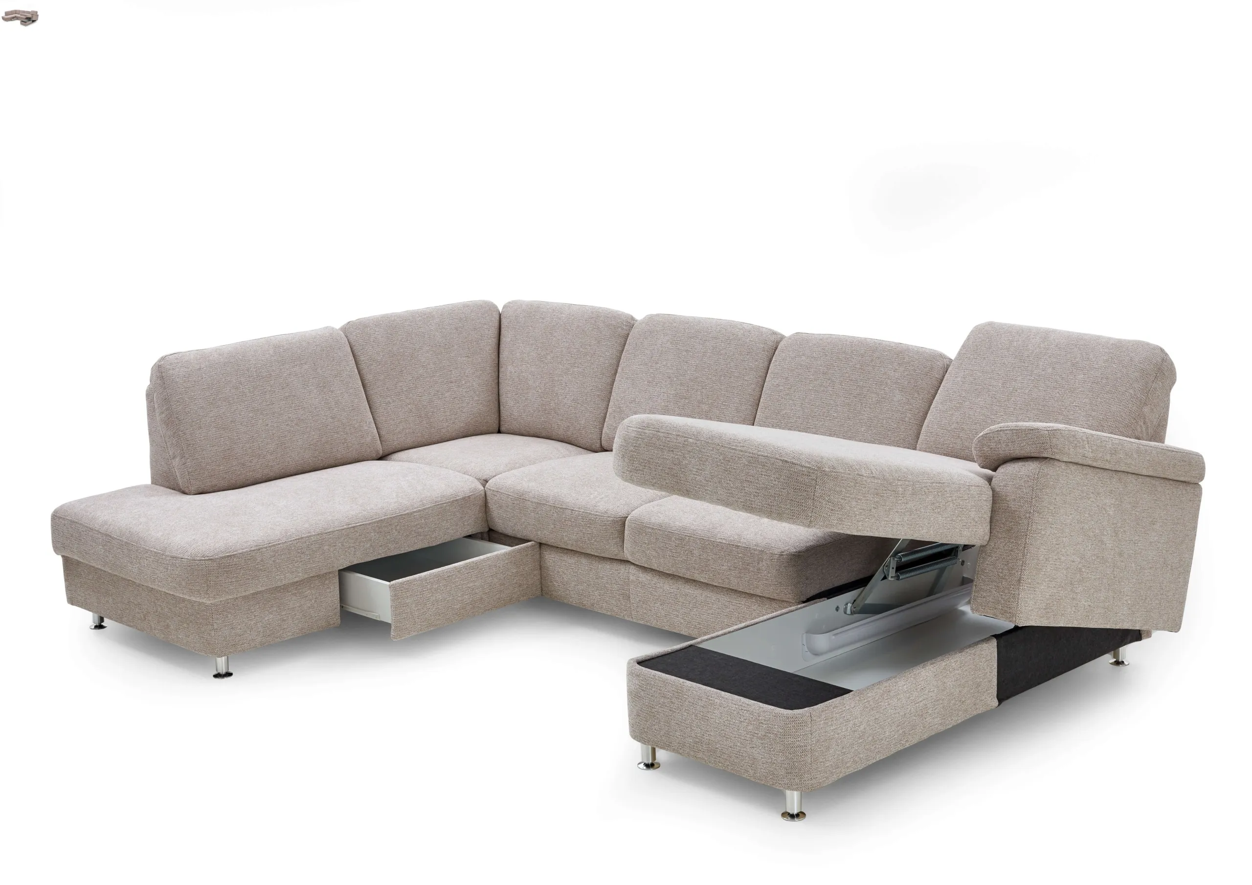 угловой элемент с ящиком + увелич 2-местный элем + Канапе с ручным механизмом подъема для хранения