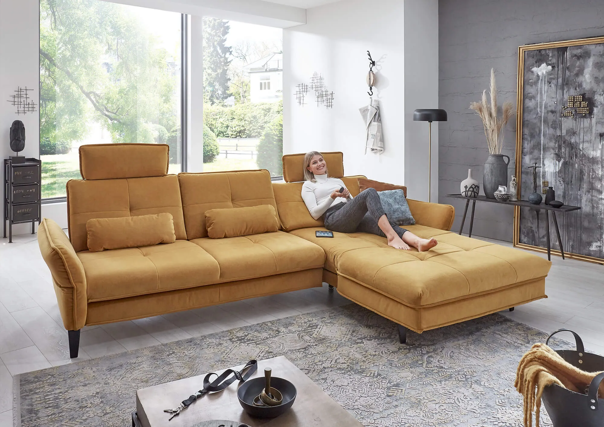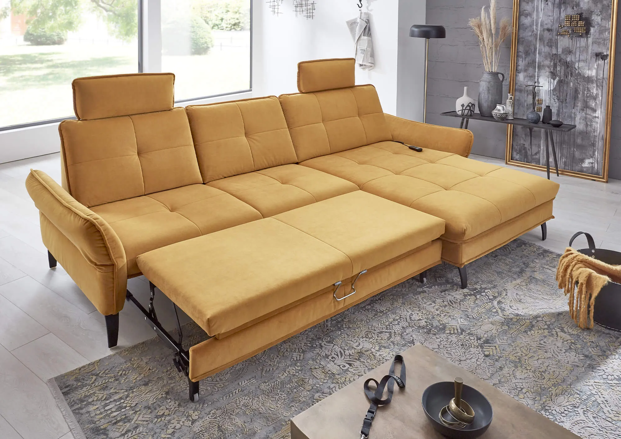 Канапе увеличенное с электрическим механизмом регулировки положения спинки и сиденья и регулируемым подлокотником