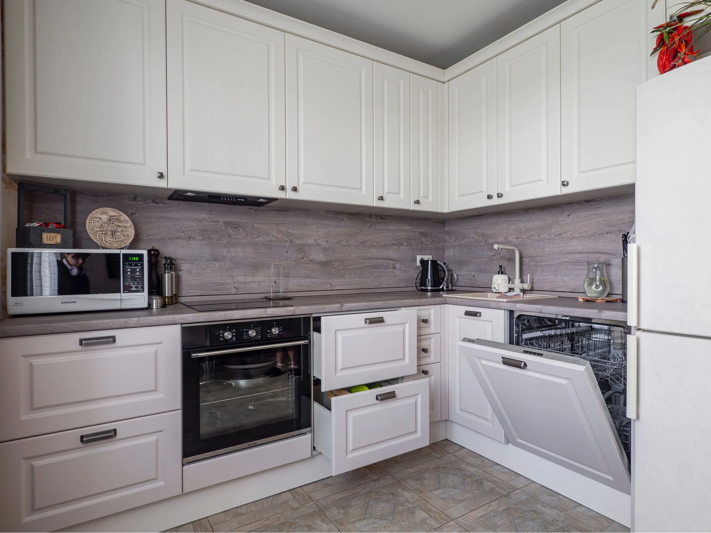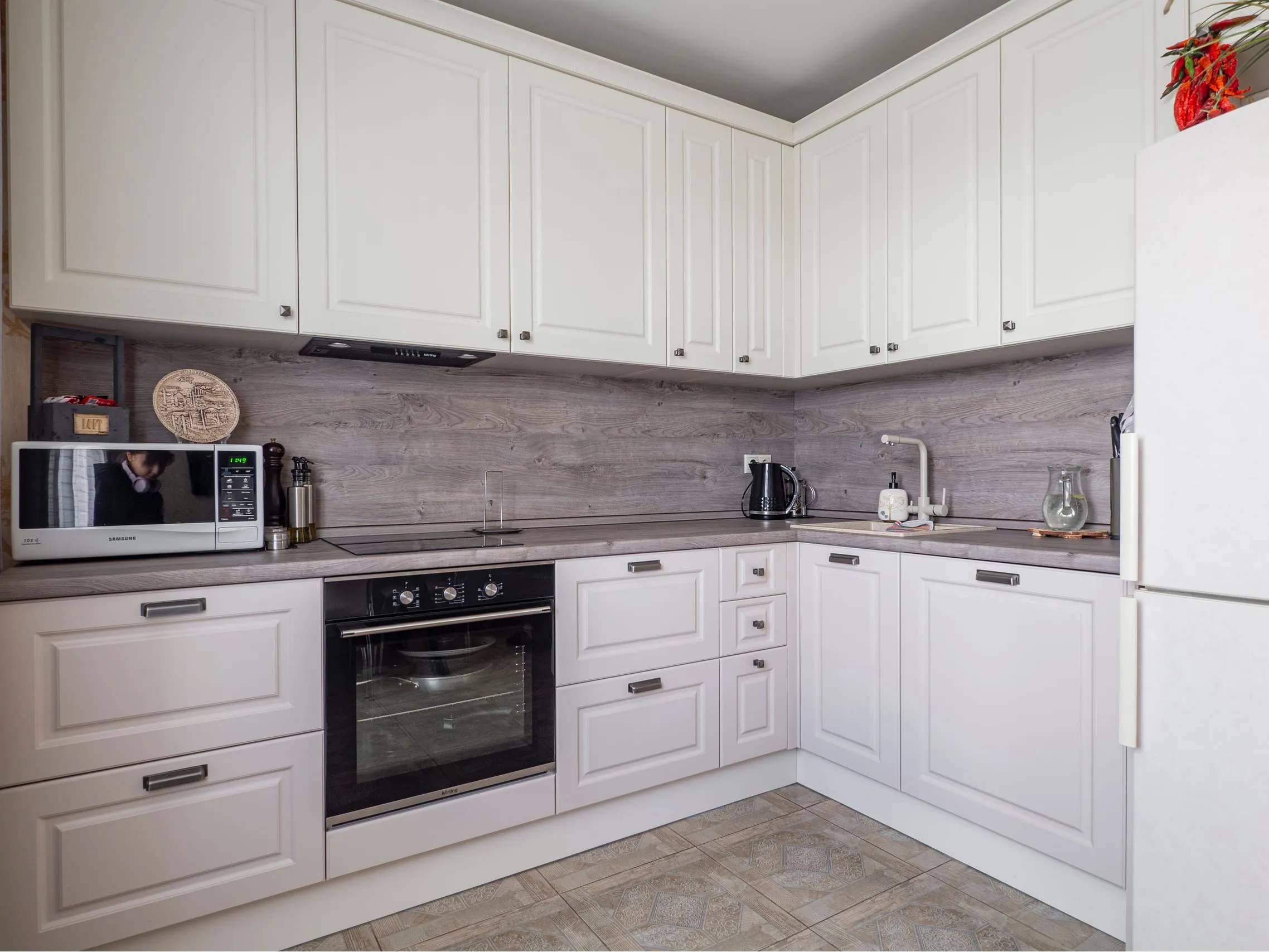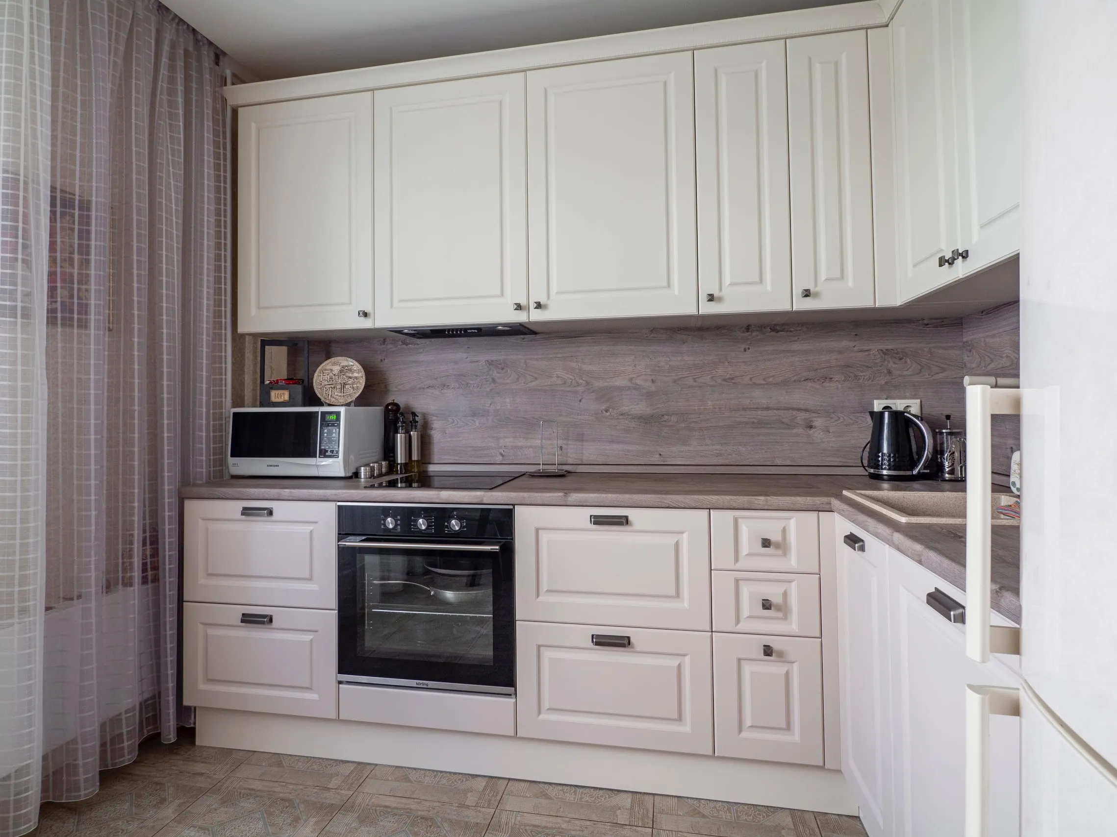 Фасады: МДФ ПВХ Лонгфорд Сатин беж; Лонгфорд Алебастр