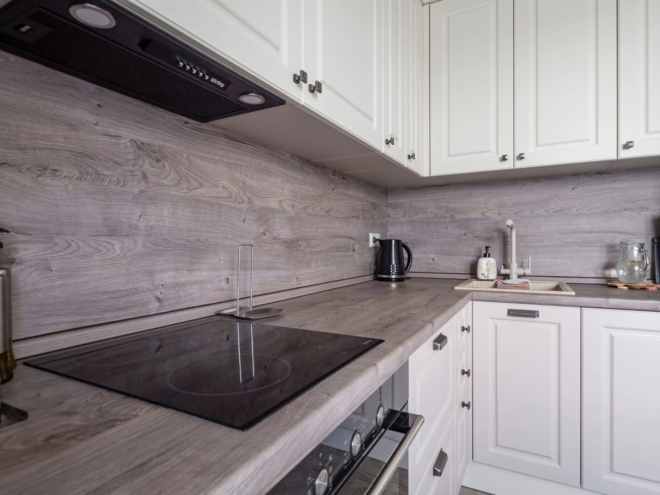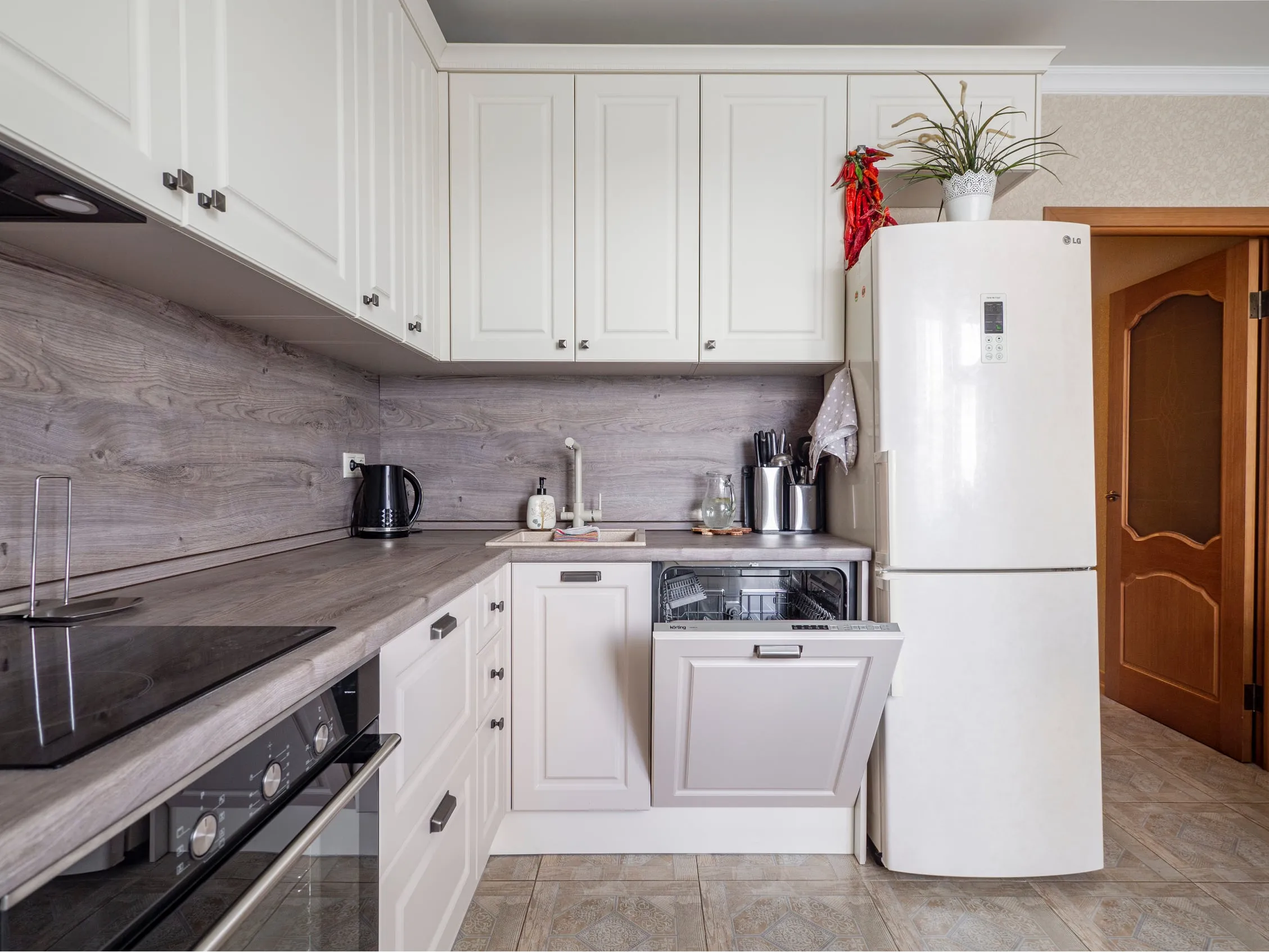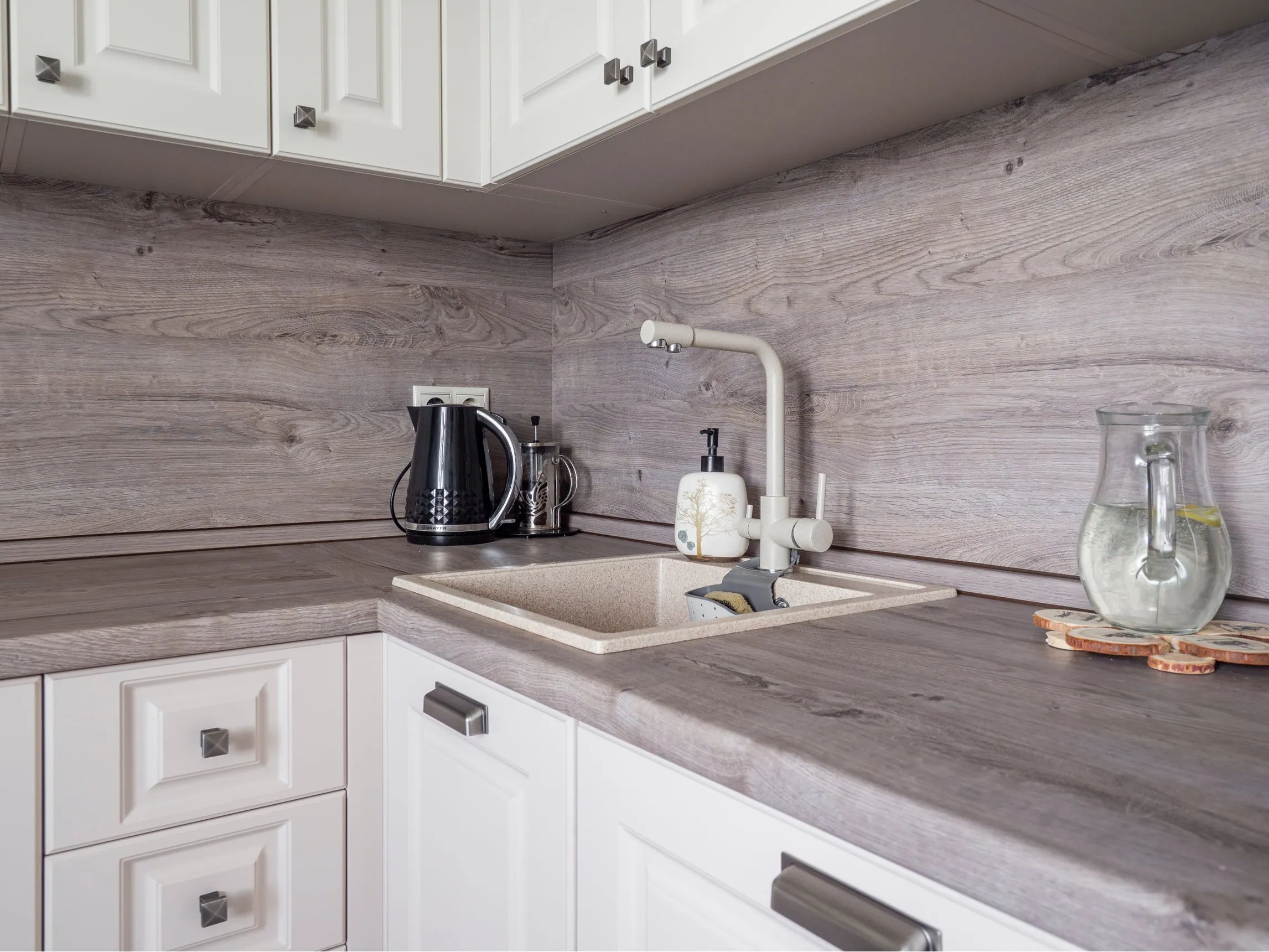 Фасады: МДФ ПВХ Лонгфорд Сатин беж; Лонгфорд Алебастр